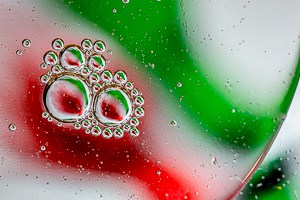 ...o tu cámara , para añadir al pensamiento de Russo. Eso es parte de la belleza de la técnica que voy a mostrarte. Usted no necesita tener una gran cámara, lentes especiales, luces de fantasía, o accesorios costosos. Un plato de vidrio, un poco de agua, un poco de aceite de cocina y algunos objetos coloridos de cualquier tipo funcionarán. Puede trabajar en el interior con una simple iluminación o salir a la calle y utilizar la luz del día para sus tomas. Si vive en un lugar donde febrero es una época fría y miserable para estar al aire libre, trabaje en interiores. Si quizás estás en el hemisferio sur y febrero es verano, llévalo afuera.