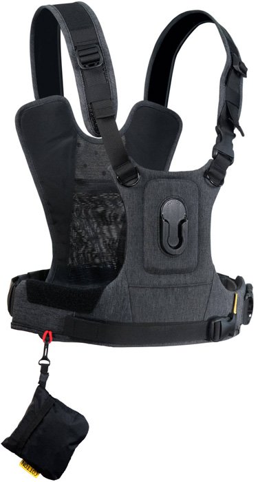 Este sistema se envuelve alrededor de su pecho, sujetando su cámara de forma segura y cerca de su centro de gravedad.