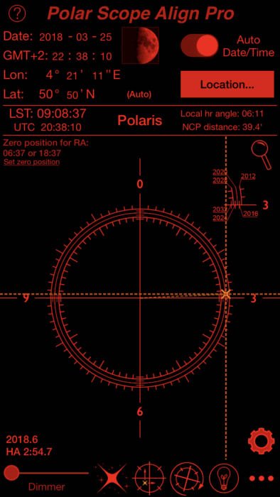 PS Align  . Esto puede mostrarle la posición que debe tener Polaris en la retícula para la hora, fecha y ubicación actuales. Todo lo que necesita hacer es replicar lo que ve en la pantalla de su teléfono inteligente.